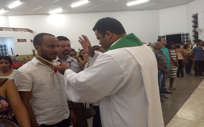 Após a Santa Missa das 19h do Quarto Domingo do Tempo Comum na Matriz Sagrada Família, nosso vigário Pe. Genivaldo Mendes, msf junto aos Ministros Extraordinários da Sagrada Eucaristia, realizou a bênção da garganta. Tal bênção é dada pela Igreja aos fiéis no dia de São Brás, 03 de fevereiro.