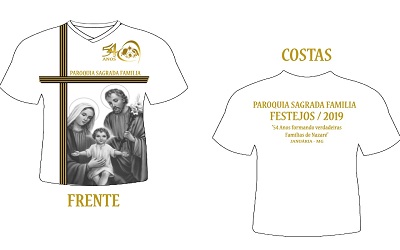Adquira já a sua camisa comemorativa aos 54 anos da Paróquia Sagrada Família. O valor é R$ 26,00 (vinte e seis reais).