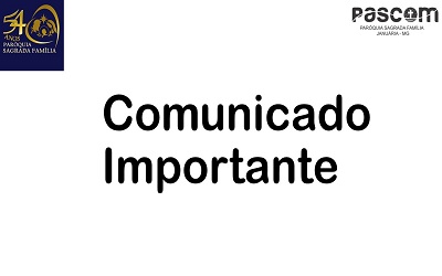 A Paróquia Sagrada Família comunica que nesta terça-feira, dia 05 de março, não haverá expediente no Escritório Paroquial, bem como não haverá a celebração da Santa Missa na Matriz Sagrada Família às 19h.