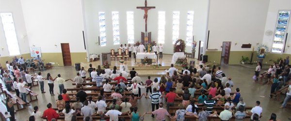 “Temos a graça de ter a Sagrada Família como modelo de espiritualidade e também como nosso modelo missionário. A Sagrada Família Peregrina, a imagem que está na pia batismal, que o ano passado em homenagem aos 50 anos de nossa paróquia percorreu todas as comunidades. Não é um simples ato de levar a imagem da Sagrada Família. Ela está nos convidando que a exemplo da Família de Nazaré, nós devemos ter a alma missionária.”