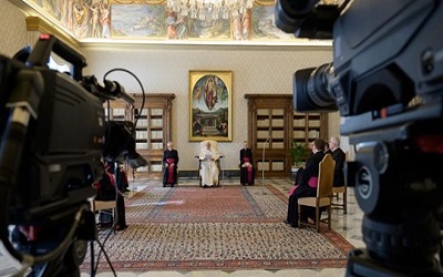 Pela segunda vez, a pandemia de coronavírus obrigou o Papa Francisco a realizar a Audiência Geral de dentro da Biblioteca do Palácio Apostólico.