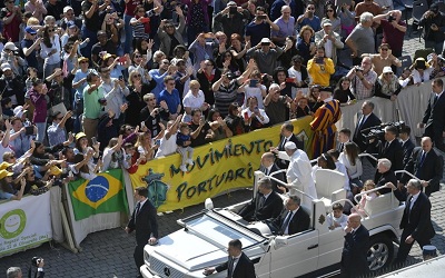 Esta quarta-feira de sol e clima primaveril em Roma foi o cenário no qual cerca de 20 mil pessoas participaram do encontro semanal com o Papa, no Vaticano. Francisco entrou na Praça São Pedro e imediatamente deixou cinco crianças subirem no papamóvel e o acompanharem na volta da praça. É a ocasião em que o Pontífice cumprimenta todos os presentes distribuindo sorrisos e carinho.