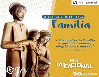 É com alegria e espírito de gratidão que celebramos neste domingo, no Mês Vocacional, a Vocação da Família. Podemos dizer que o dom da vocação à vida matrimonial, contempla a dimensão do ser pai, do ser mãe e a construção de uma família em nome do amor.