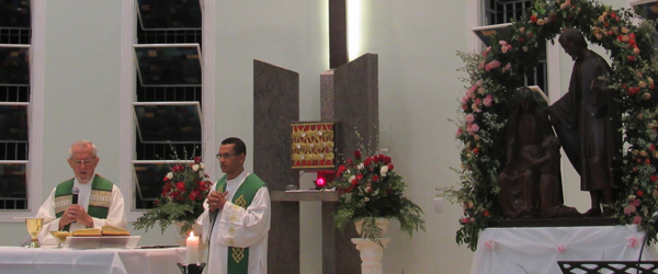 Logo após a novena, iniciou-se a Santa Missa. O presidente da celebração foi o Pe. Herbert, msf que acolheu a todos falando sobre a importância da família da nossa Paróquia. Nosso pároco Padre Laurindo Aguiar, msf acolheu com grande alegria ao Pe. Herbert e também a todos que estiveram presentes.